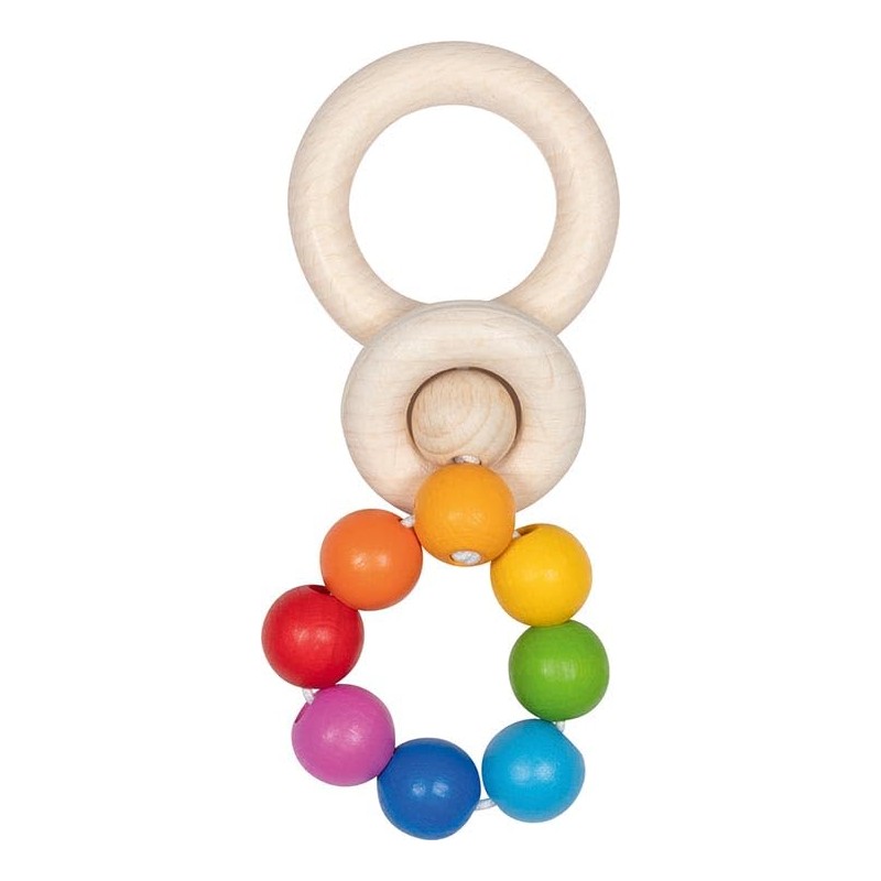 goki baby 65353 - Grasping Toy Elastic Rainbow Made of Wood, Colourful Wooden Balls, Promotes Grip Reflex and Supports the Development Process, Made in Germany, 12 cm x 3 cm x 6 cm, from Birth