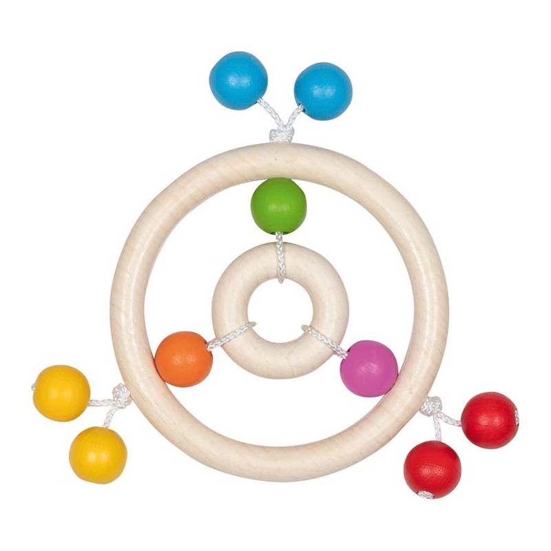 goki baby 65354 Wooden Grasping Toy Rainbow Colourful Wooden Balls and 2 Rings, Promotes Grip Reflex and Supports the Development Process, Made in Germany, 13 cm x 2 cm x 12 cm, from Birth