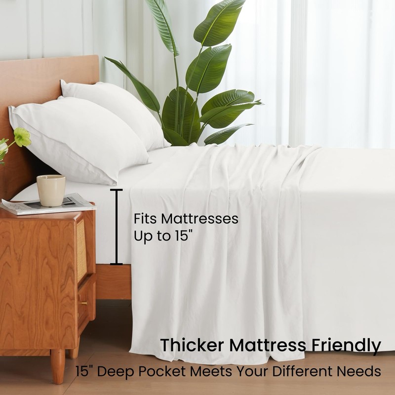 - ALWAYS STAY ON THE BED - Featuring 4 robust elastic corner straps, the fitted sheet of this twin sheets set offers a secure and snug fit around your mattress. Moreover, we've incorporated 1-inch thickened full elastic, which ensures enduring elasticity even after years of use. Now you can enjoy a peaceful, uninterrupted sleep night after night!