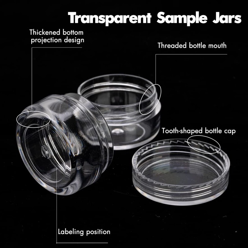 - PACKAGE CONTENTS: Our sample jar set includes 50 pieces of empty clear small sample containers with 50 pieces of lids, 50 labels that help you easy to mark contents, and 4 mini spatulas to help you spread, or mix personal care products.