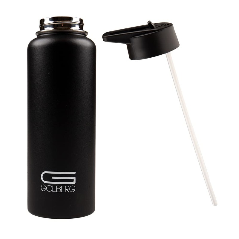 Golberg Water Bottle with Flip Top Lid and Straw – Black/Pink/Gray/Green – Great for Hiking and Biking – 40 OZ