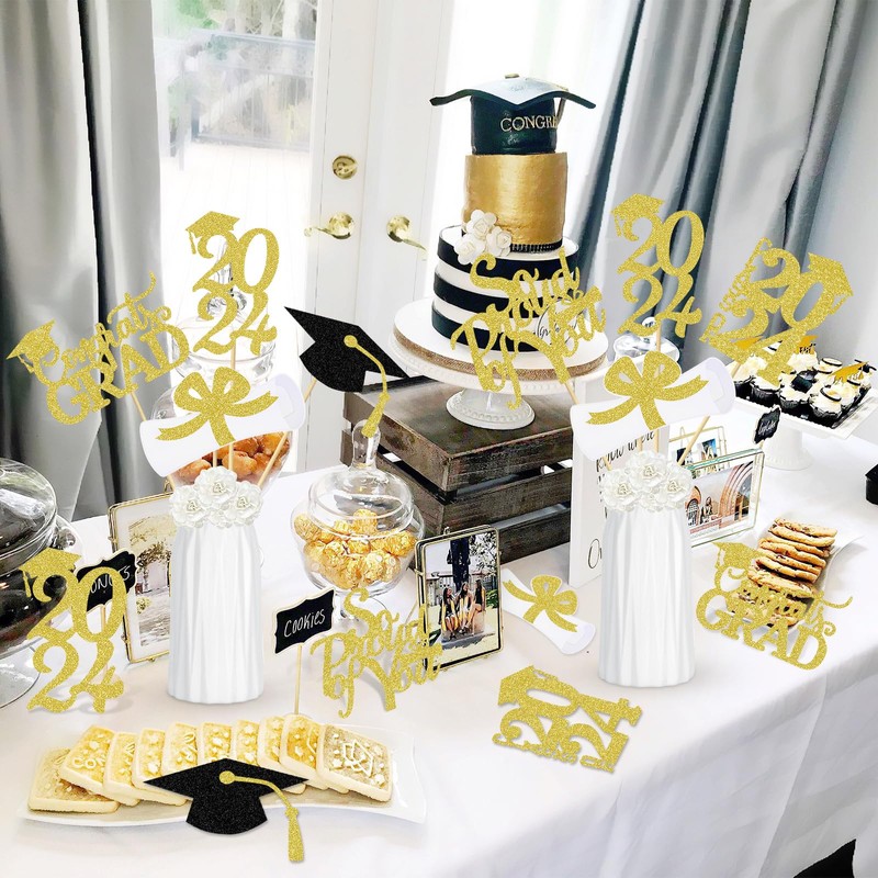 - 🎓🎓【Worth Buying It】Gold 2024 graduation table centerpieces decorations will add brilliance to your 2024 graduation party, record the important achievement moments and make them astounded.Enjoy it now!