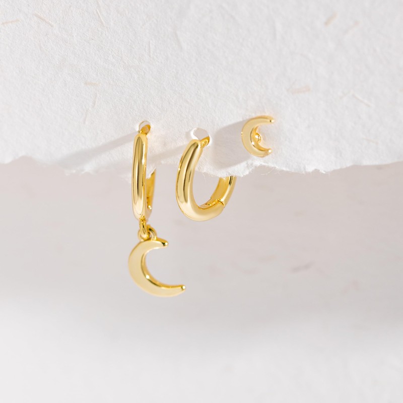 Gold 3pcs Small Moon Hoop Stacks Earrings for Women Dainty - 14k Gold Plated ...