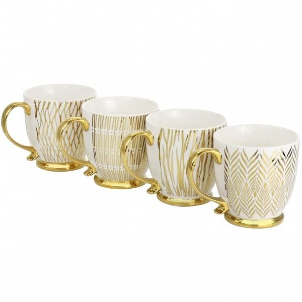Gold 4 Piece 16.7oz Electroplated Fine Ceramic Mug Set Stripe Formal Round Dishwasher Safe