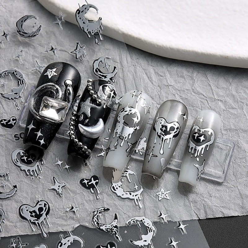 - 【Package Contain】You will 6 sheets hot stamping and hot silver design love heart nail stickers, each sticker contains a different colors love heart pattern design for you to use and replace in daily life. The unique love heart moon stars nail sticker patterns can give you nail different others, let you full enjoy manicure time.