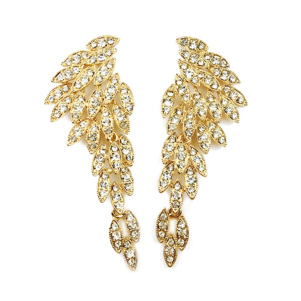 Gold Angel Wings Eagle Wings Rhinestone Retro Statement Earrings Dangling Earrings Wedding Bridal Prom Chandelier Long Drop Earrings for Women (Gold Without Card/Envelope)