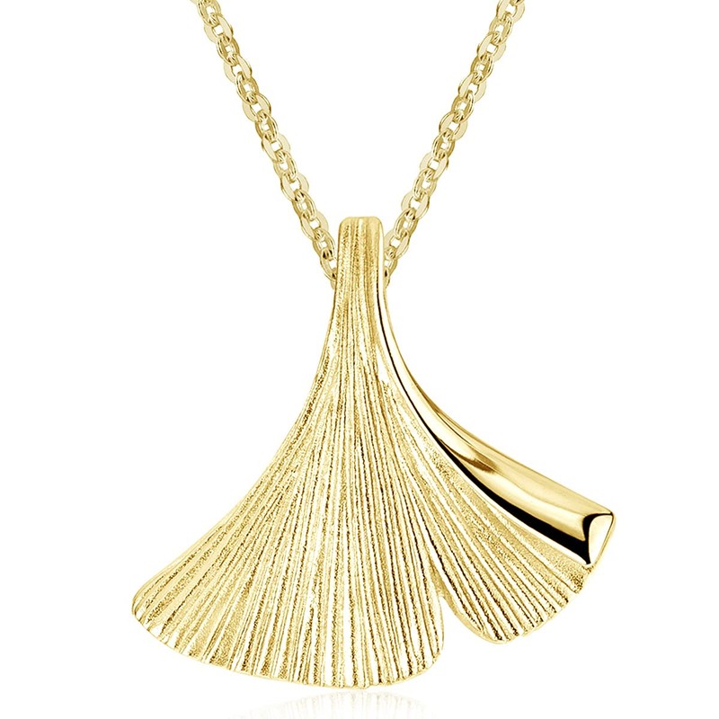 - Detaillierter Ginkgo Blatt Anhänger aus vergoldetem 925 Echtsilber. Den Goldanhänger können Sie auf Wunsch mit einer feinen goldenen Ankerkette im Set bestellen