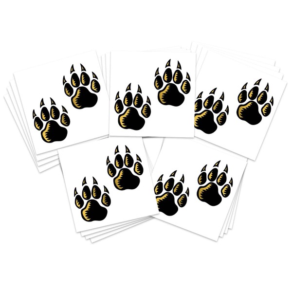 Gold & Black Wolf Paw Prints Temporary Tattoos/Pack of 20 / Great for School Spirit - Sports - Cheerleading