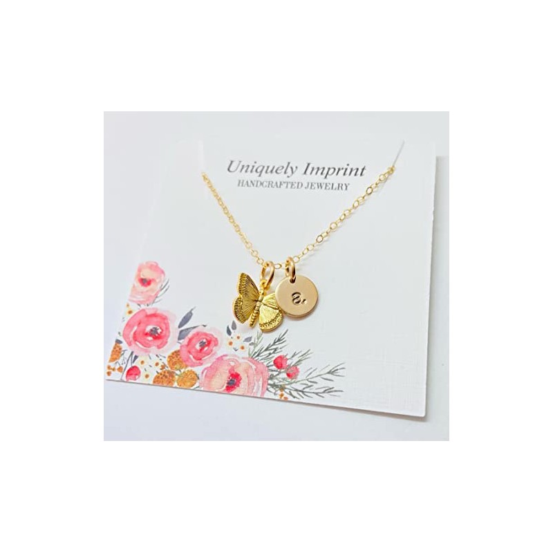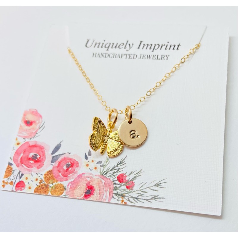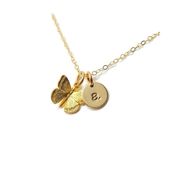 Gold Butterfly Necklace,14k Gold Filled Necklace, Initial Butterfly Necklace