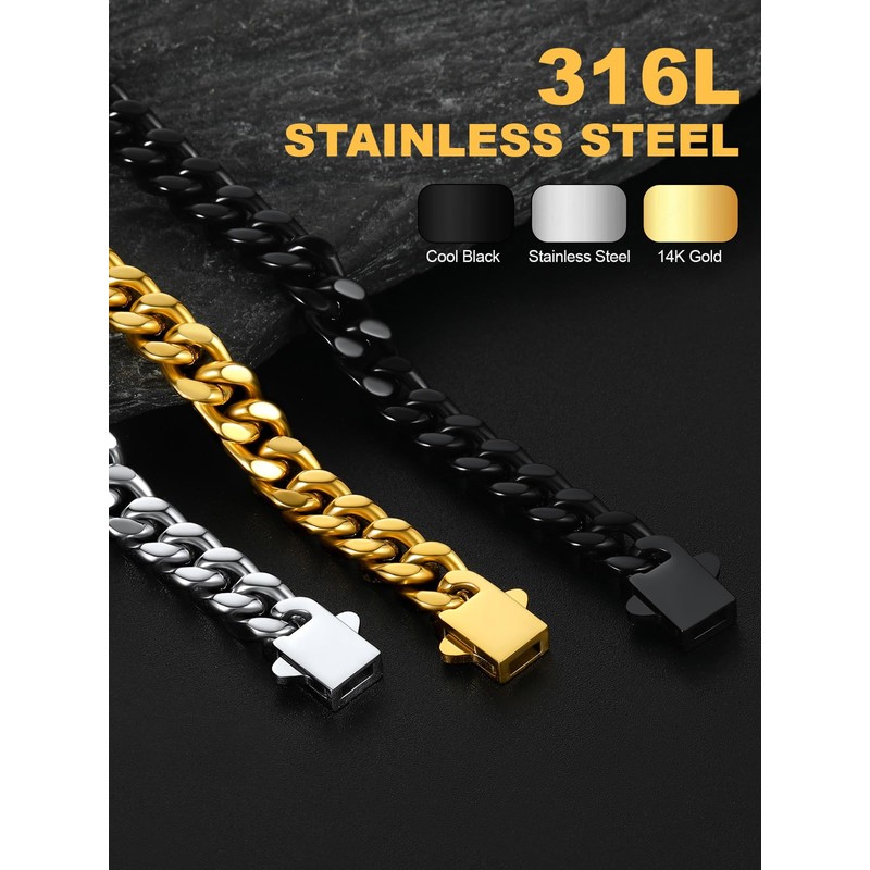 - Material - Made of stainless steel, 14k gold plated or cool black plated. High polished surface,comfortable to wear. Hypoallergenic mens bracelet is suitable for sensitive skin ,lead free and nickel free.