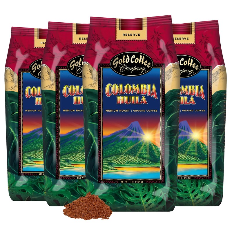 Gold Coffee | Premium Colombia Huila, Medium Roast Ground | 100% Colombian Coffee, 1 lb. (4 Pack)