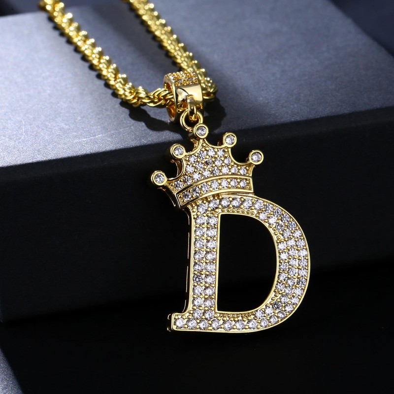 Gold Crown Initial Necklaces for Men Women Dainty Letter D Pendant Necklace, ...