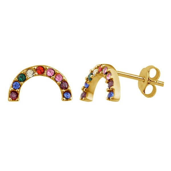 Gold Dipped Sterling Silver & CZ Crystal Rainbow Stud Earrings