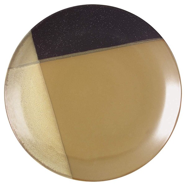 - Gold Dust Black by Sango, Stoneware Dinner Plate, Active Pattern: No, Circa: 2004, Manufacturer's #5022, Size: 10-3/4" Diameter, Black, brown, tan & beige geometric shapes., Plate used for holding the main meal.