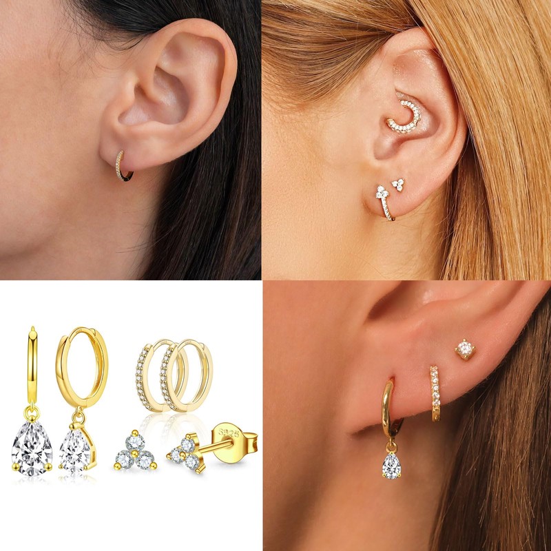 - Silver Earrings for Multiple Piercing: 1 pair of flower stud earrings, 1 pair of dangle earrings and 1 pair of hoop earrings. It can be worn alone or stacked for a layered look, great for multi-hole wear.