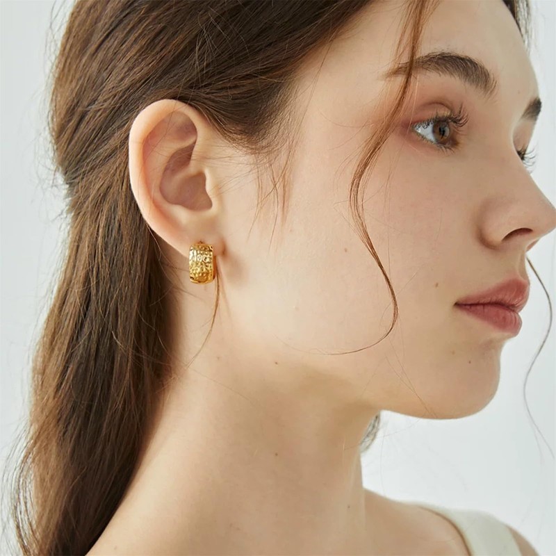 - Hammered Gold Huggie Earrings for Women: Chunky gold hoop earrings are made of quality brass in great polish and plated with 14k real gold and 925 sterling silver post, nickel-free, and hypoallergenic, no fade, rust, or tarnish. Just add a bright pop of sparkle to any outfit with the lovely hoops.