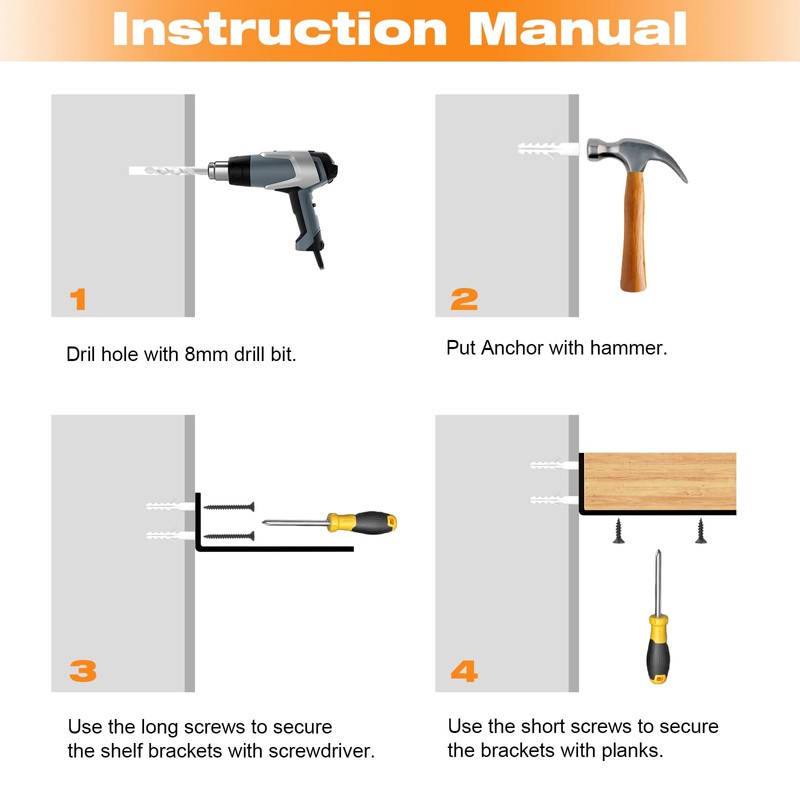 - Perfect DIY Shelves: Heavy duty screws and drywall anchors needed to install shelf brackets are included. You can DIY as you see fit!