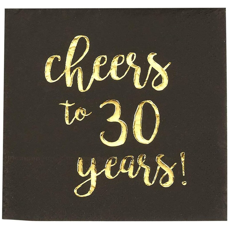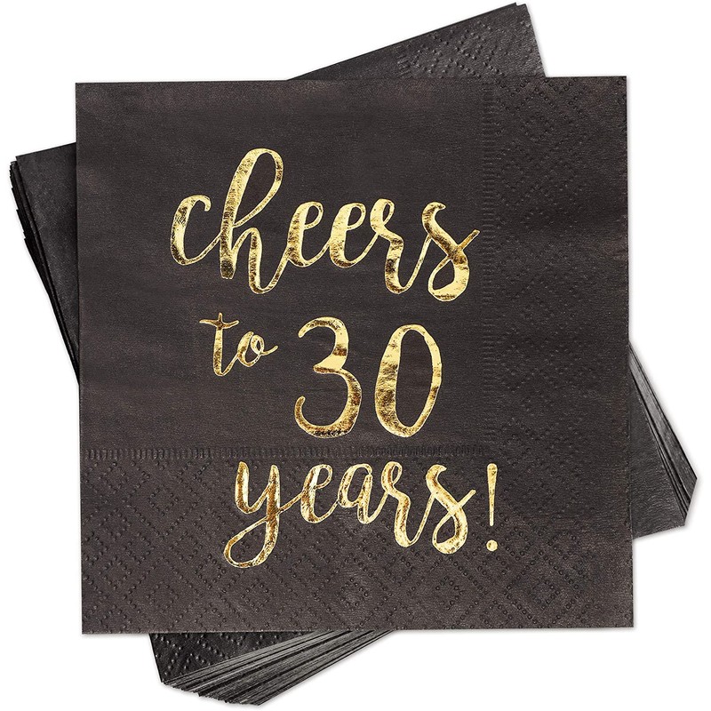 - SET INCLUDES: 50 highly absorbent 3-ply party napkins made from paper featuring a "Cheers to 30 Years" imprint in gold foil