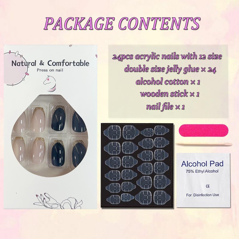 - 【Lasting Effect】You can use the jelly sticker we give away ( use jelly sticker, fake nails can be reused ), but the jelly sticker is not as good as liquid glue, if you want to last longer, please use liquid glue, the effect can last 1 weeks.