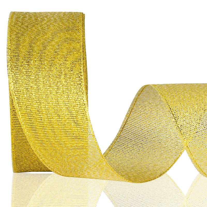 Gold Glitter Ribbon 1 1/2 Inch, 25 Yards/roll Sparkly Metallic Fabric Ribbons for Gifts Wrapping, Party Decoration, Wedding and Crafts.