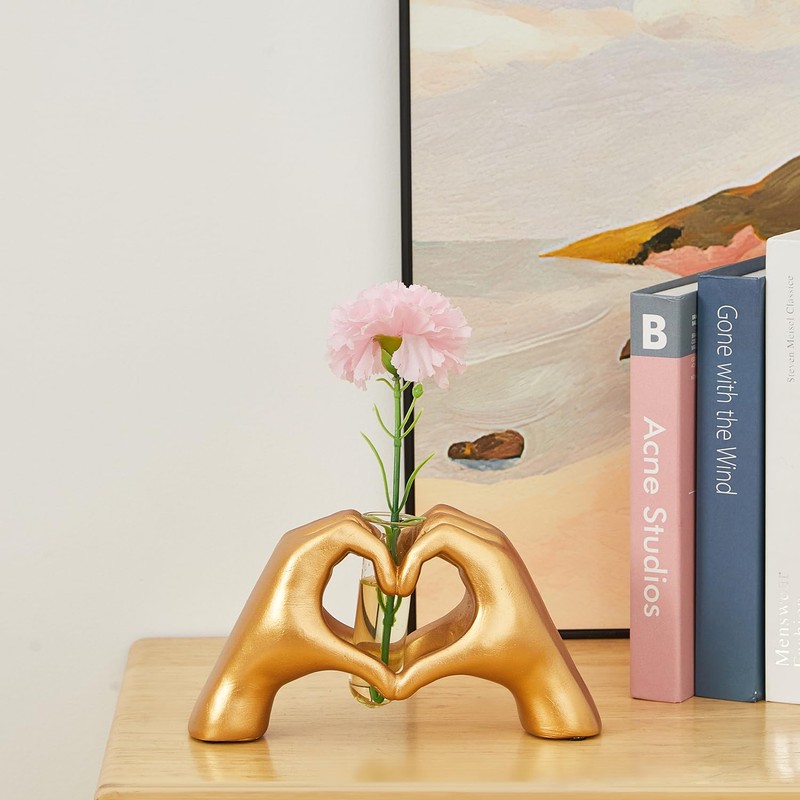 Gold Heart Hands with Glass Planter Terrarium Decoration, Modern Love Statue for Dining-Table, Pothos Glass Vase for Air Planter Desktop Décor.