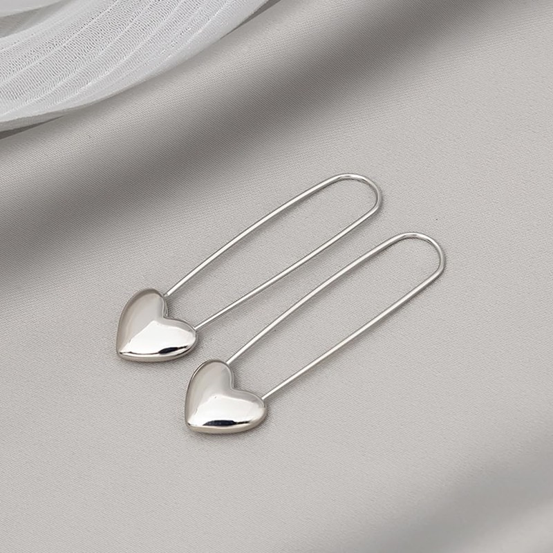 - [Heart PaperClip Dangle Earrings]Crafted with a playful twist on the timeless paperclip design, these earrings feature a heart-shaped charm dangling gracefully from the base. They're a good blend of simplicity and charm, adding a touch of quirkiness to any outfit. The geometric rectangle detailing on the hearts adds a subtle sophistication, making them stand out in the crowd