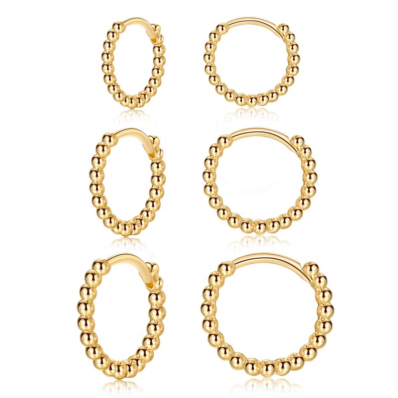 - SMALL GOLD BEAD HOOP EARRINGS: 3 Pairs Simple Beaded Huggie Hoop Earrings in Different Size, Inner Diameter: 8/10/12mm, can be worn alone or stack along with other small hoops and studs