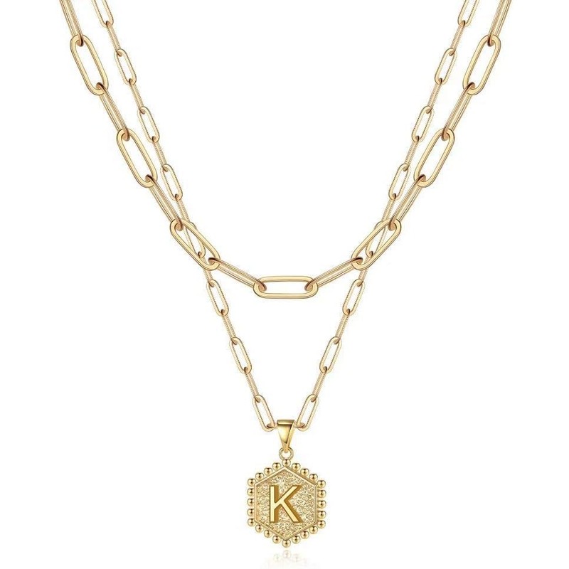 Gold Initial Necklace for Women- 18K Gold Plated Layered Necklace Set for Women (K)