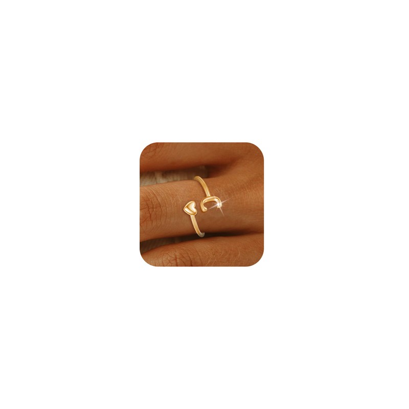 Gold Initial Rings for Women Non Tarnish Gifts Trendy Stuff Adjustable Heart Initial Cuff Rings Stackable Letter Rings Birthday Jewerly Gifts for Women