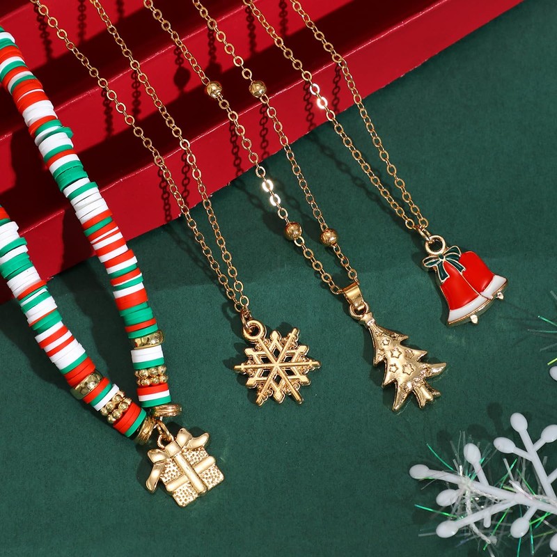 Gold Layered Christmas Necklace Boho Xmas Jingle Bell Christmas Tree Gold Snowflake Present Pendant Necklace Colorful Beaded Choker Chain Winter Holiday Neckalce Jewelry for Women (gold)