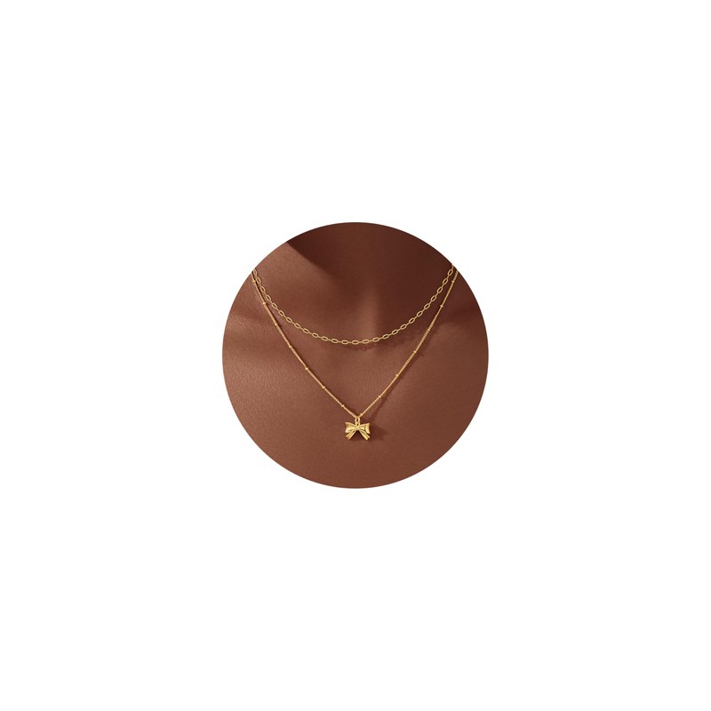 - 2PCS GOLD BOW NECKLACE: The layered necklace is composed of a paperclip chain and a dainty bow pendant necklace.As a stacked necklace,elegant and cute,gold layered necklace can match your styles freely,you can wear them together or separately