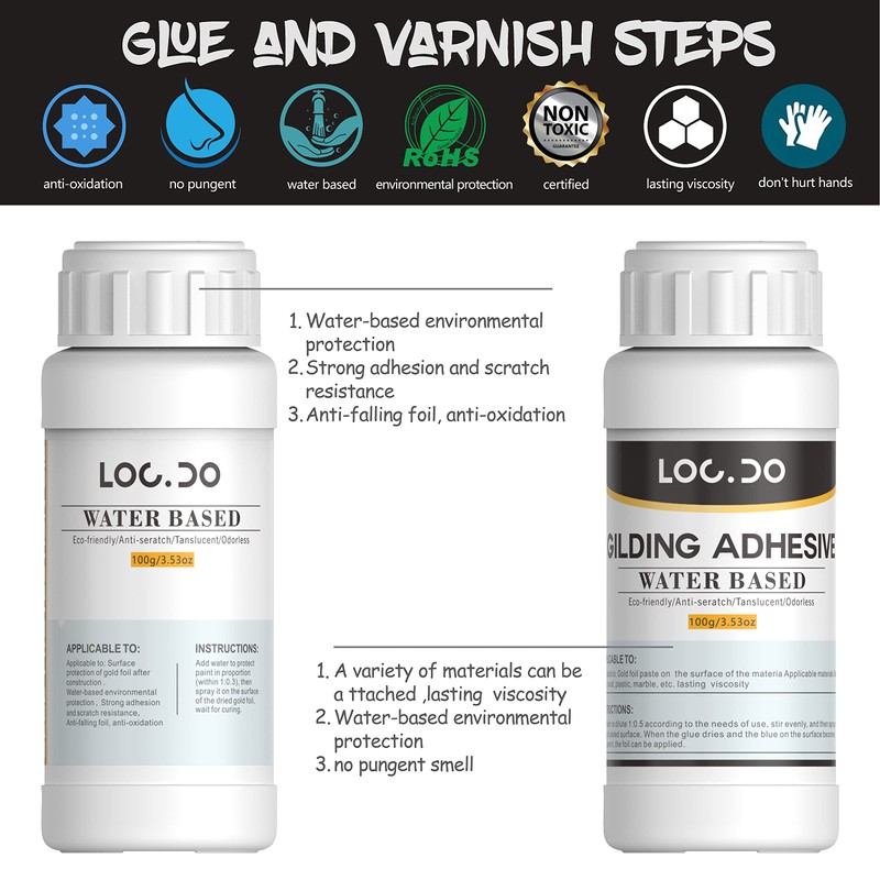 - Safe : This set of gold leaf adhesive is a water-based adhesive specifically formulated for metal leaf, toxic-free and safe for use