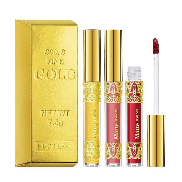 Gold Lipstick 3PCS Matte Lipstick Long Lasting Wear Non-Stick Cup Waterproof Gold Lip Gloss for Women (SET A)