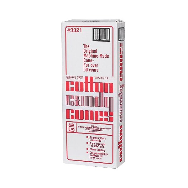 Gold Medal 3321 Plain Cotton Candy Cones, 300-Count.