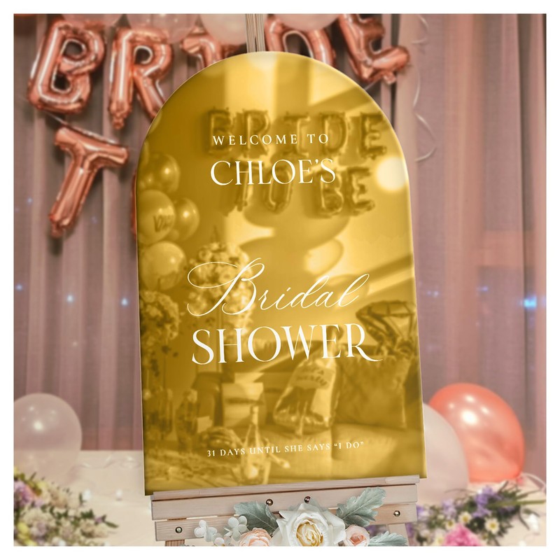 Gold Mirror Bridal Shower Welcome Sign - Custom Gold Mirror Bridal Shower Signs - Gold Bridal Shower Decorations For a Luxurious Bridal Shower