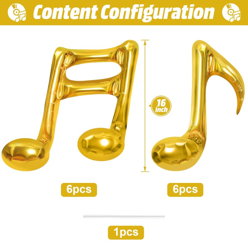 - GOLD MUSIC NOTE BALLOONS: You will get 16 inch 6pc gold single note music balloons and 6 gold double notes music balloons. gold music notes party decorations is ideal for creating memorable decorations for your’s special day.
