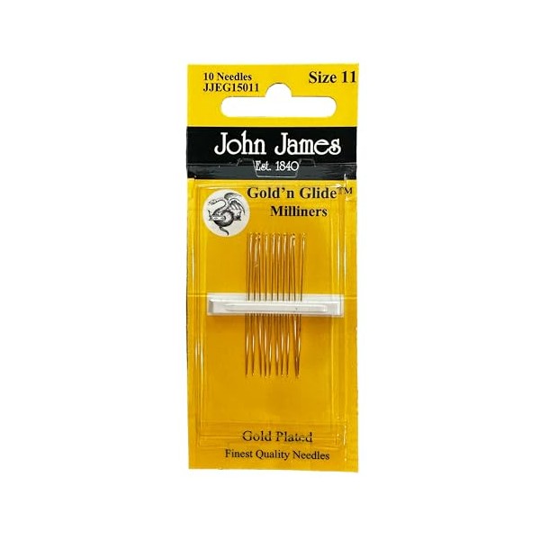 John James Gold Eye Easy Glide Milliner Needles-Size 11 10/Pkg, (JJEG150-11) Gold Plated