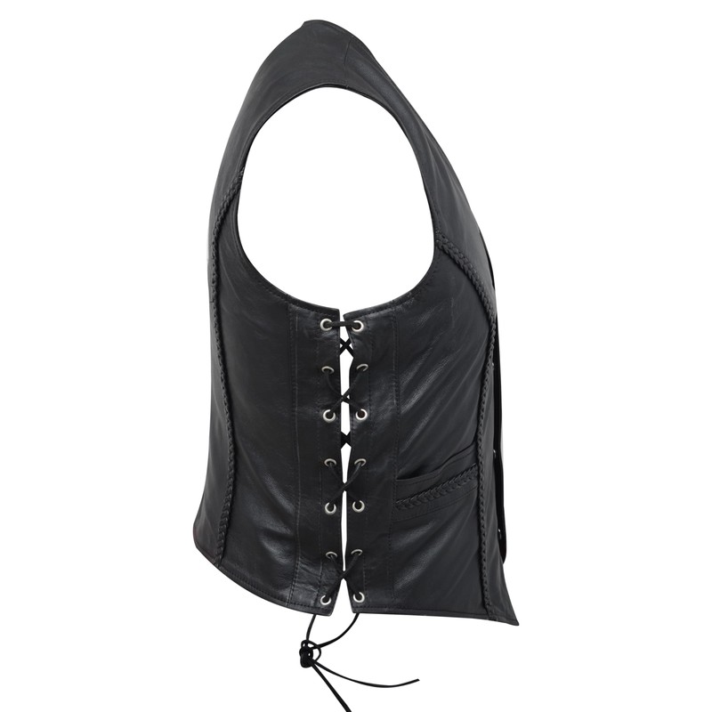 GOLD PANEL Women's Premium Leather Motorcycle Rider Vest with 100% Polyester Lining Snap Closure Motocross Motorbike Riding Vest Black (US, Alpha, Large, Regular, Regular, Standard, Black)