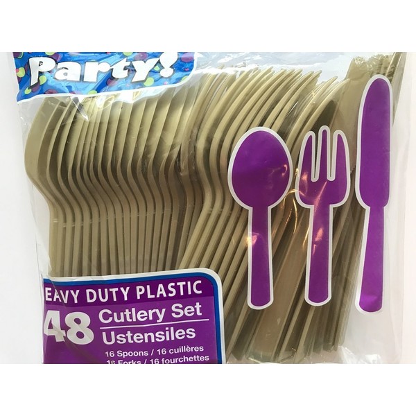 Gold Plastic Cutlery Set 48 Pc Knifes Forks and Spoons