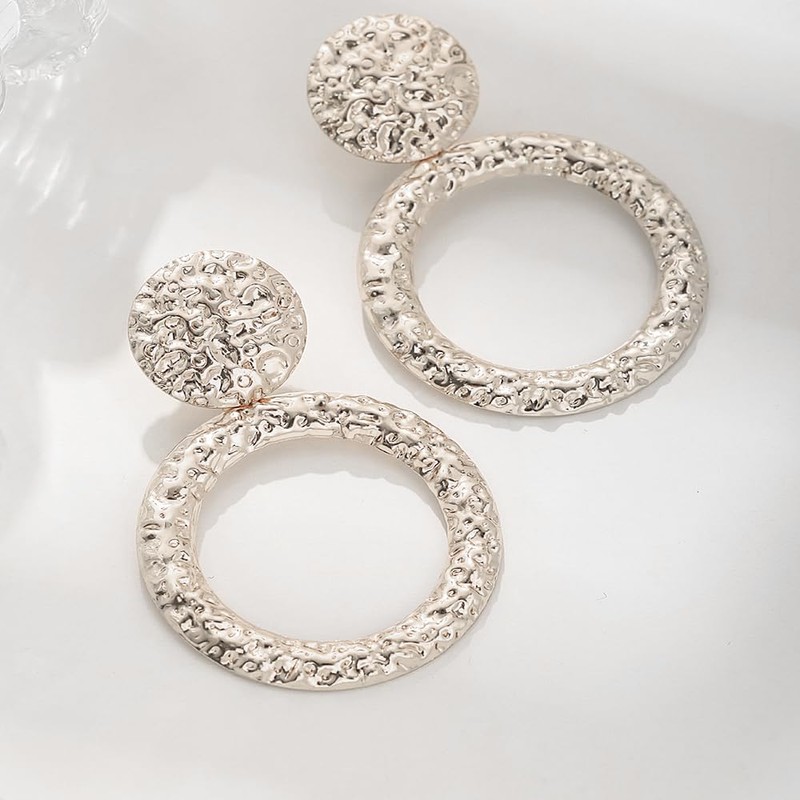 - [Geometric Hammered Earrings]Stand out with our 18k gold geometric texture earrings! These statement pieces are for women who love to make bold fashion choices. The exaggerated geometric round design and hammered finish give these earrings a vintage yet modern feel.