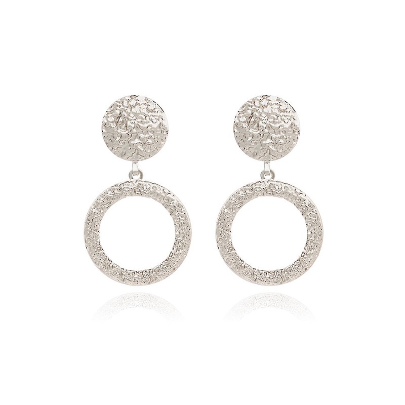 Gold Plated Round Hammered Dangle Earrings for Women,Exaggerated Silver Geometric Large Chunky Metal Earrings,Minimalism Statement Jewelry Gifts (Silver)