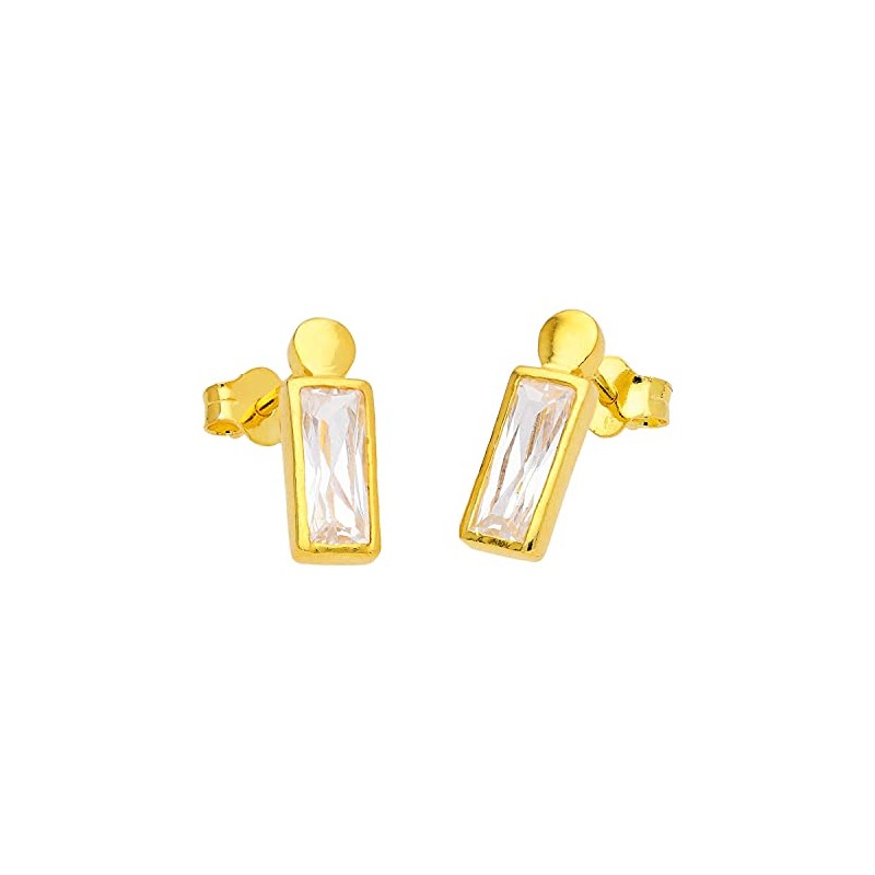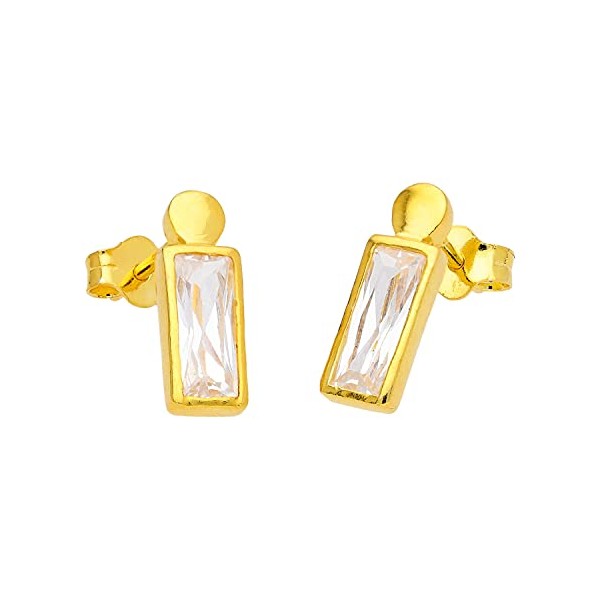 Gold Plated Sterling Silver Bobble Baguette CZ Stud Earrings, Sterling Silver