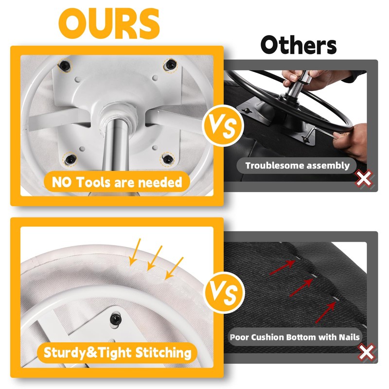- 2 MINUTE EASY DIY-NO TOOLS NEEDED: Farewell those tedious installation steps and enjoy a hassle-free installation! To simplify assembling process, we have the tray and screws fixed on the cushion. No tools are required! Within 2 minutes you can get the roller stool for home, vanity, salon, spa, massage, studios