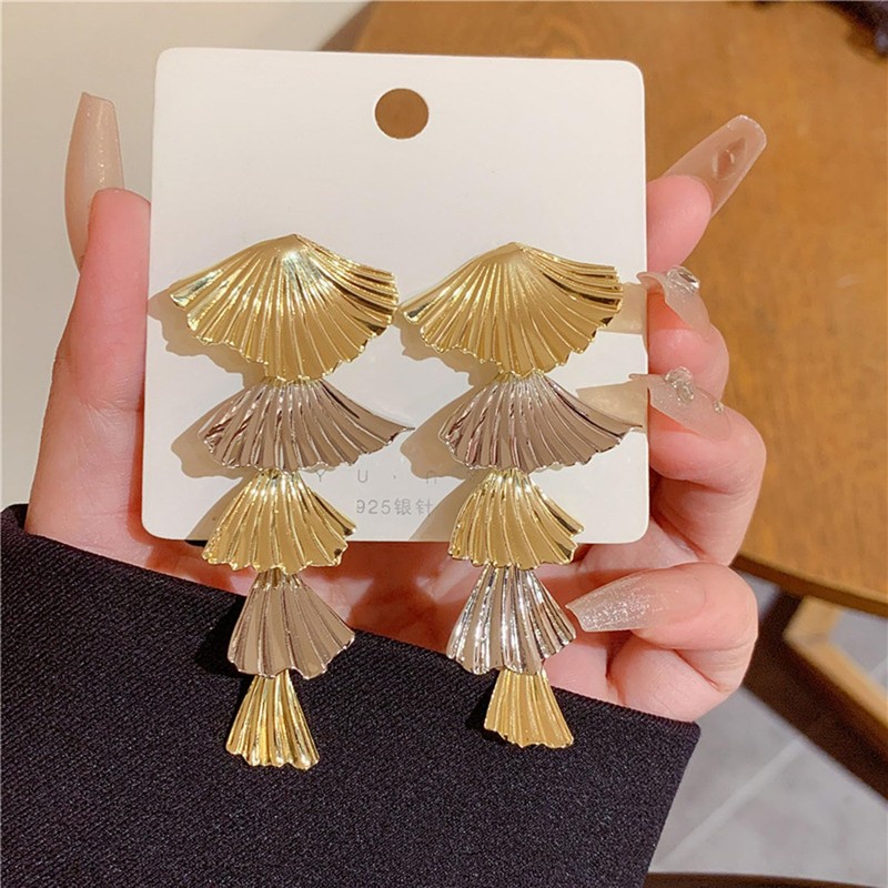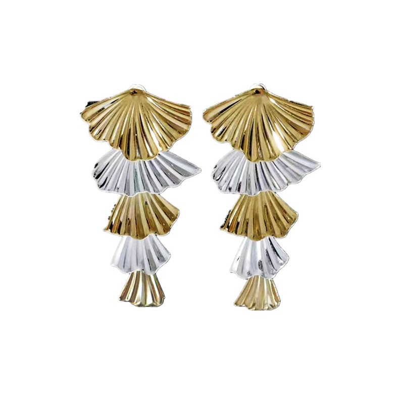 - Gold statement earrings: These chunky earrings feature a simple shell shaped design, fashionable and minimalist, with contrasting colors that stand out and add charm and coastal charm to your set.