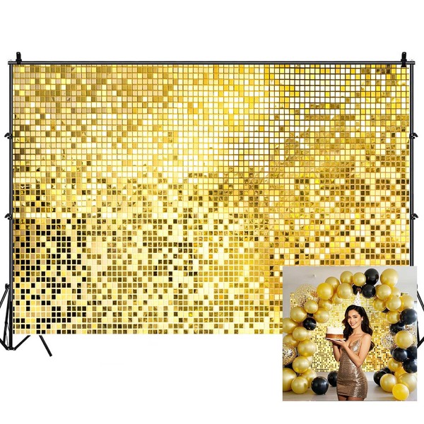 Gold Shimmer Sequin Wall Backdrops for Photoshoot, Glitter Wedding Bride Shower Birthday Party Picture Decorations Backdrop for Photography Decor Banner Photographic Studio Photo Backgrounds 7X5 FT