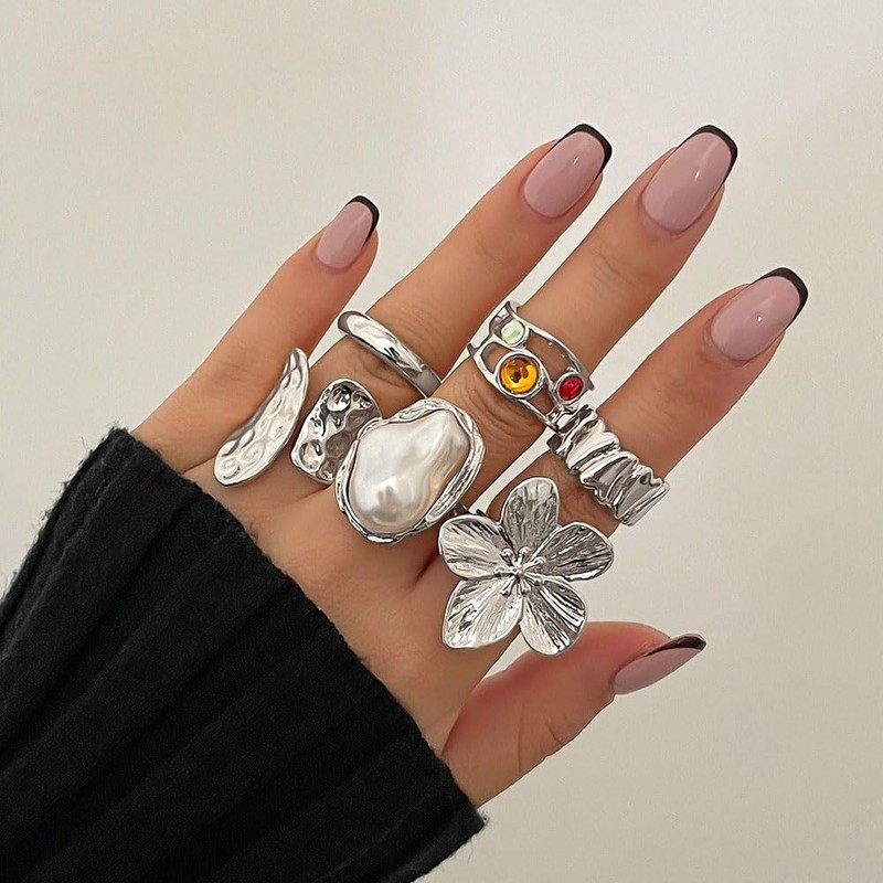 - Unique Design——This set of rings uses irregular elements and combines several elements such as flowers and pearls to make the design more unique. Each ring has its own style, whether worn alone or stacked, it looks great