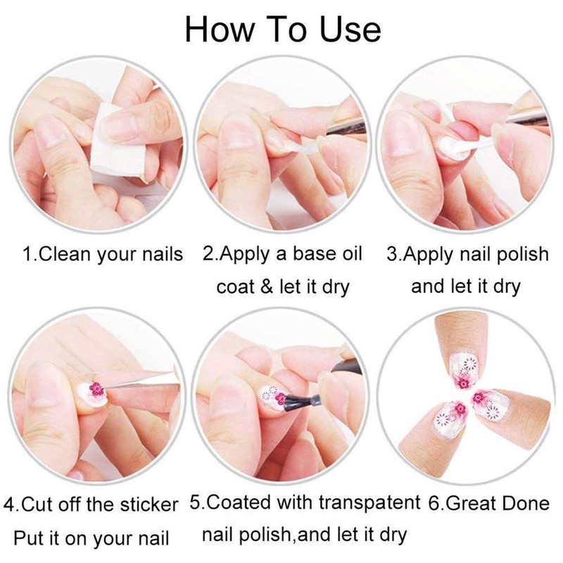 - Easy to Use: Firstly, you have to use tweezers to tear off and stick the nail decal on your nail, secondly, you can apply a layer of gel polish which will keep your nail for a long time. Finally, you are done with your nail making