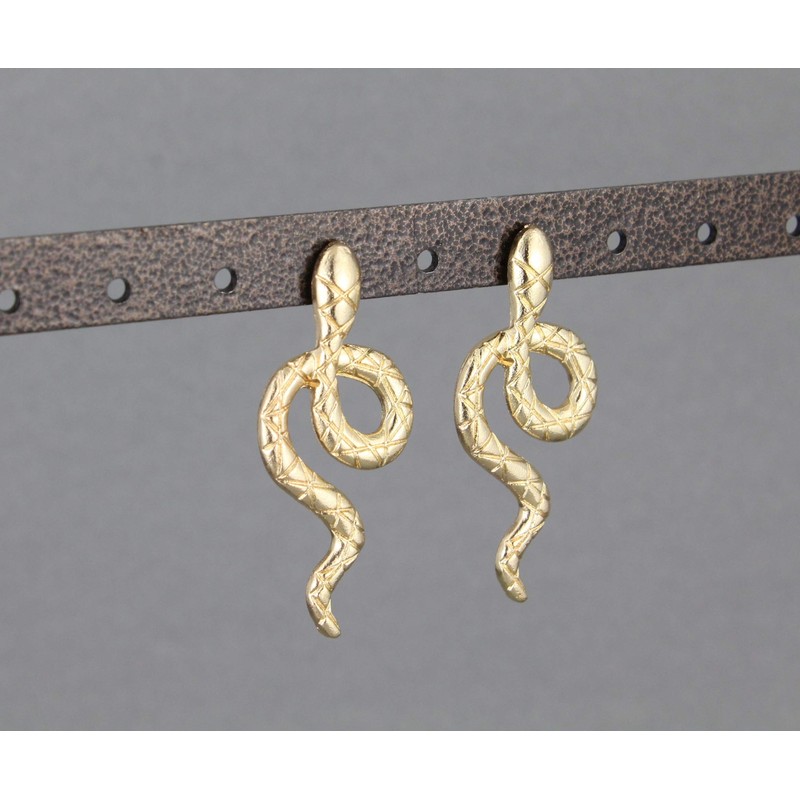 gold snake earrings asp cleopatra toga serpent post stud dangle 1 5/8 inches long coiled snake earrings