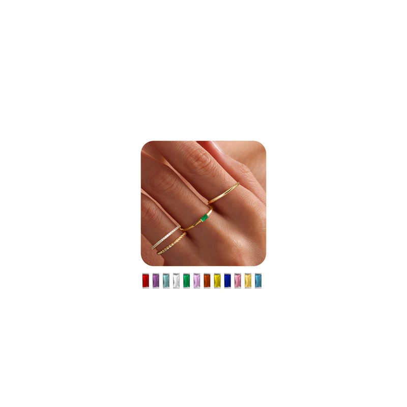 - Dainty Birthstone Rings: 12 month birthstone ring is designed in the shape of baguette, being the perfect personalized piece for any fashion-forward woman.Each Piece is enough to be wear alone as statement ring or stacked with other rings to get that unique and special ring part. You can wear it as a symbol of your own birthstone or as a thoughtful presant for a loved one. Perfect for everyday wear or special occasions.
