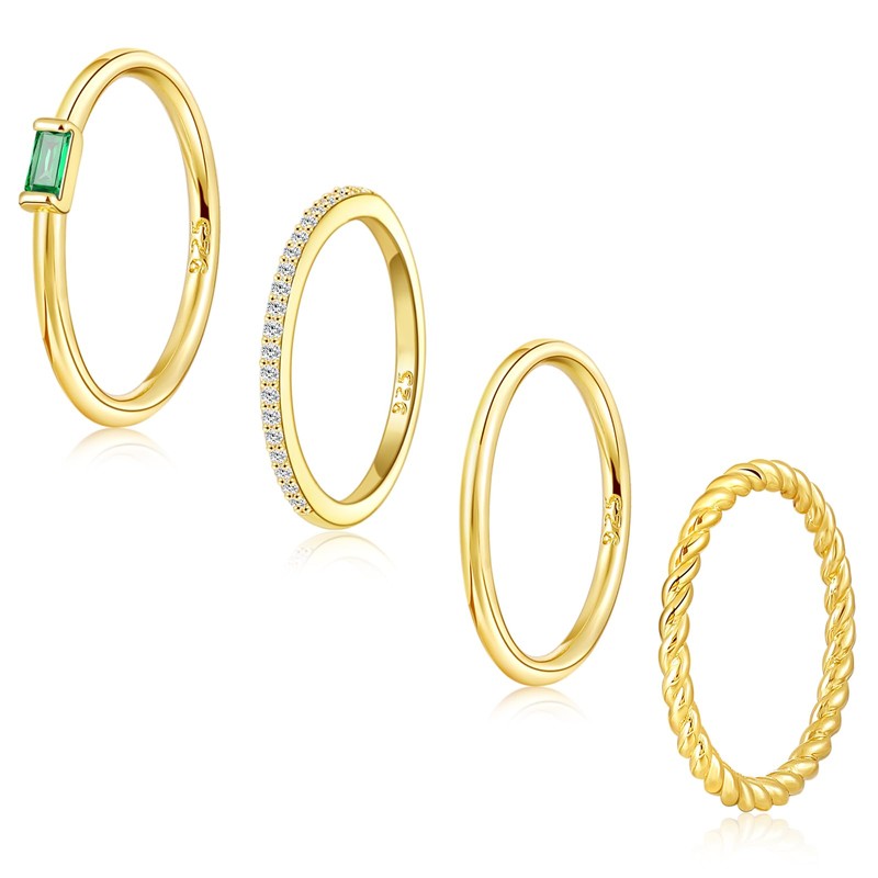 - Stackable Ring For Women: One package includes 4 pcs different style stackable rings: dainty birthstone ring, cubic zirconia ring, smooth band ring, cute twist ring. Each thin gold rings contains unique design elements, which are very simple, trendy, minimalist and elegant. These dainty gold bands can be used as wedding band, engagement ring, anniversary ring or promise ring, stackable rings, thumb rings, pinky rings, knuckle rings etc.